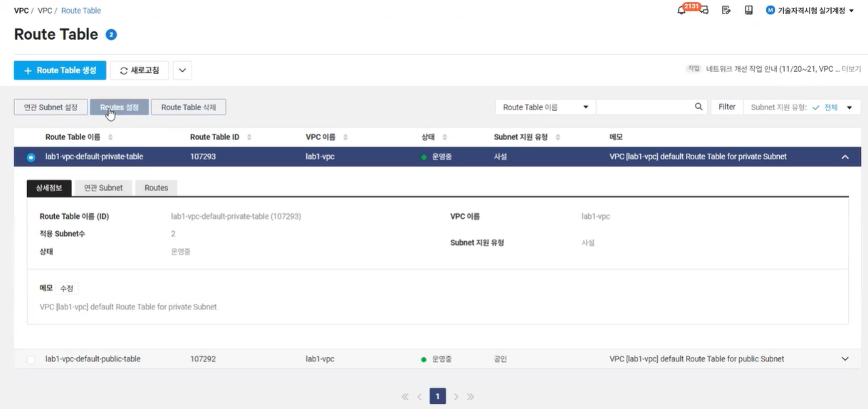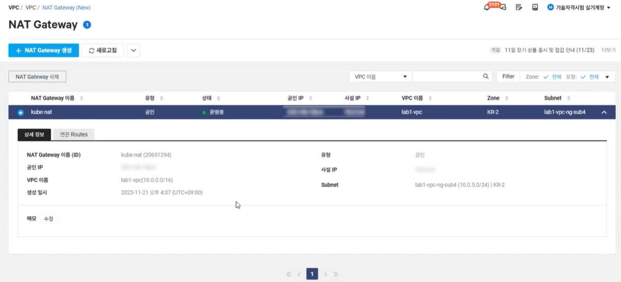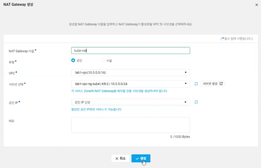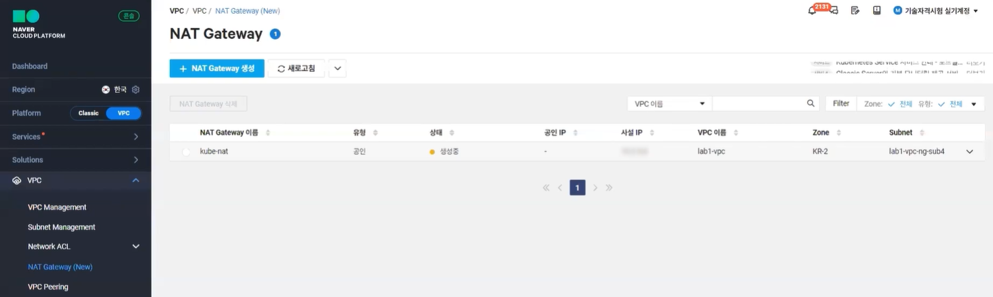## 쿠버네티스 --> Nat Gateway 연결되게 라우팅테이블 설정