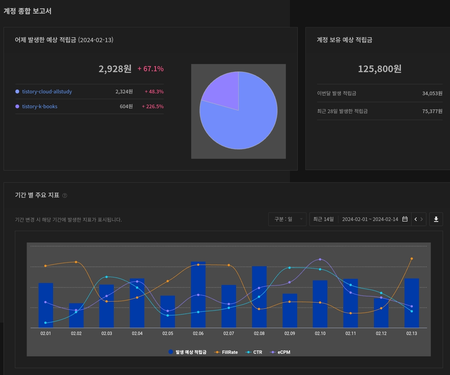 | [2/8][역행자 동기부여] 블로그 성장기 애드핏&애드센스 수익 !! (83) | 2024.02.08 |