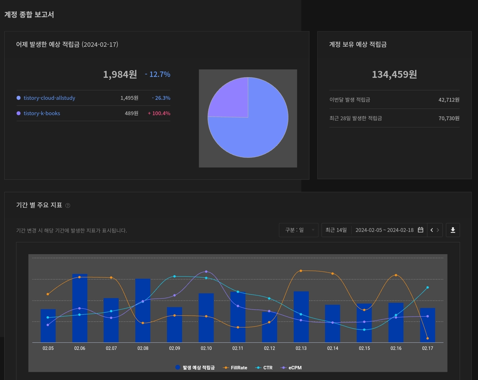 | [2/14][역행자 동기부여][387달러 돌파!!] 애드핏&애드센스 수익 !! (57) | 2024.02.14 |