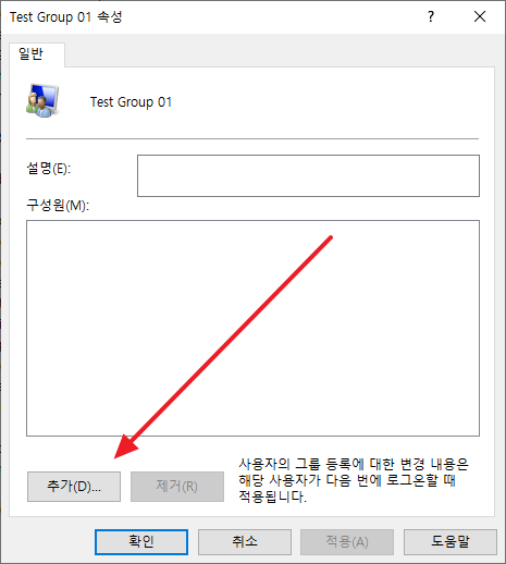 - [소속 그룹] 탭에서 [추가]를 클릭합니다.