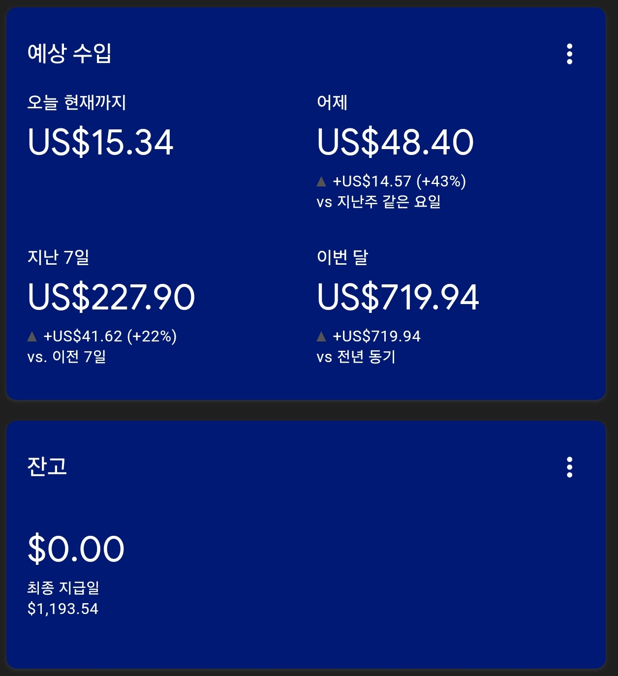 | [2/23][역행자 동기부여][US $649 돌파!!] 애드핏&애드센스 수익 !! (59) | 2024.02.23 |