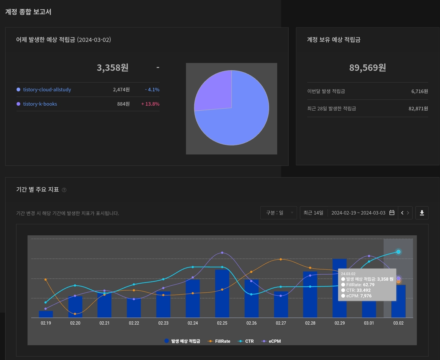 | [3/5][역행자 동기부여][US $130 돌파!!] 애드핏&애드센스 수익 !! (64) | 2024.03.05 |