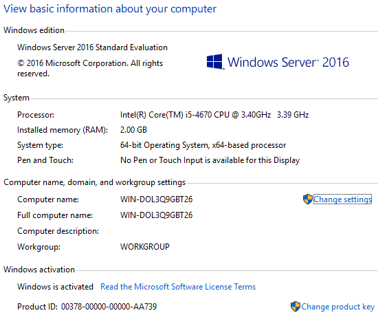 왜냐하면 위 키는 윈도우 서버 2016 Standard 에디션 용도이지 평가판 용도가 아니기 때문이다.