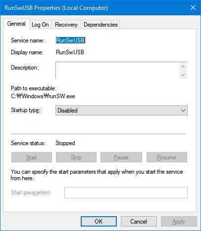 이 서비스(runsw.exe)의 표면적인 역할은 c:\windows\swusb.exe를 실행하고 c:\windows\runsw.log 파일을 생성한다.