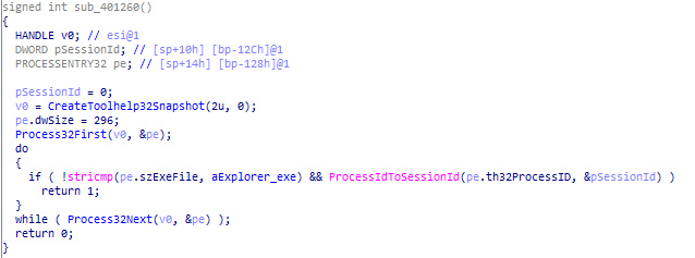 여기를 보면 CreateToolhelp32Snapshot 함수를 호출하는데, 다 확인하고 난 다음 CloseHandle 함수를 부르지 않아서 memory leak이 생기는듯... 관련 문서(https://docs.microsoft.com/en-us/windows/win32/api/tlhelp32/nf-tlhelp32-createtoolhelp32snapshot)를 보면 "To destroy the snapshot, use the CloseHandle function"이라고 되어 있다. sub_401260 함수는 얼마나 자주 불리는지 알 수 없지만 1초마다 한 번씩 부른다고 가정한다면... :(