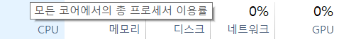 작업 관리자의 두 탭에서 표시되는 CPU 이용률 메트릭이 서로 일치하지 않는 이유는 각 탭에서 표시되는 CPU 이용률 메트릭이 의미하는 바가 서로 다르기 때문입니다(최신 CPU의 경우 일반적으로 [프로세스] 탭에서 CPU 이용률이 더 높게 표시됩니다).