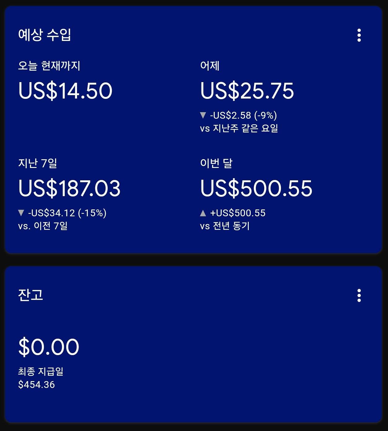 | [인터넷건물주 - 4월 월세] US $485 돌파 - AdSense 4/26일!! (69) | 2024.04.26 |