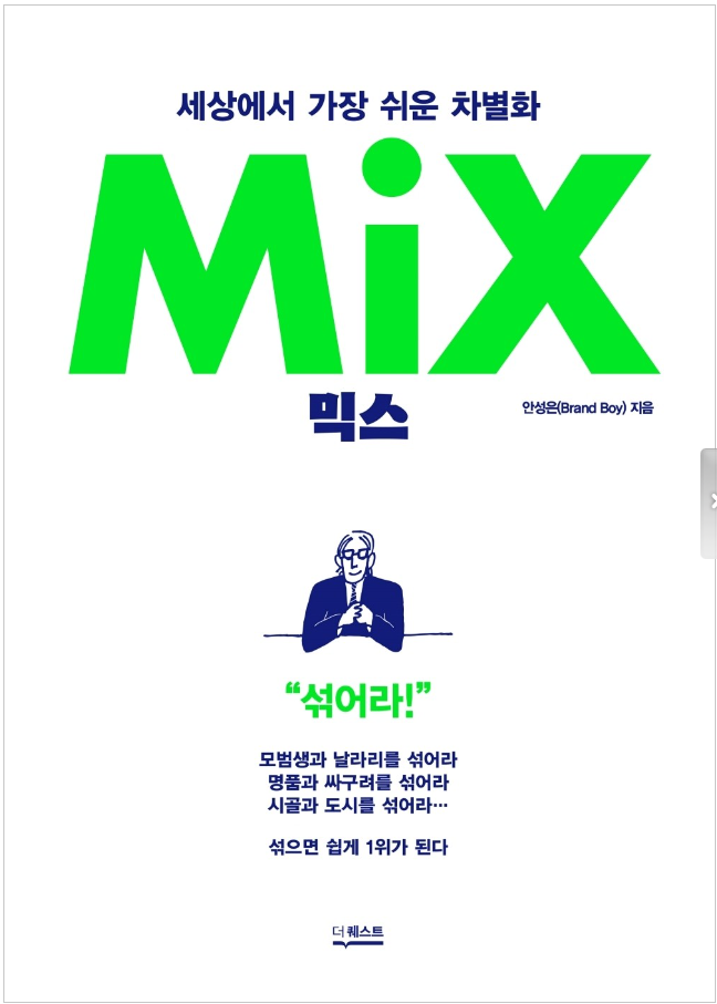 브랜드보이는 10년 넘게 광고 기획자, 브랜드 마케터로 일해오면서 수많은 히트작을 관찰하고 또 만들었다. 그 과정에서 이 세상의 히트작과 성공의 중심에 ‘믹스(Mix)’ 전략이 있음을 발견했다. 따로 떼어놓고 보면 도무지 어울릴 법하지 않은 것들도 막상 붙여보면 놀랍도록 멋진 결과물이 나온다. 지금껏 보지 못한 ‘낯선’ 물건이 탄생하고, ‘차별화’ 이루고, 열광하는 ‘팬’을 만든다. “이질적이고 낯선 것들을 꽝 하고 부딪혀 일으키는 스파크!” 변종들의 마음을 사로잡고 공감을 끌어내는 영리한 믹스의 선수들을 책에서 만나보자.