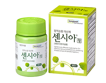 센시아는 동국제약에서 출시한 일반의약품 입니다. 정맥순환 장애 증상 개선제로 잘 알려져 있으며, 연두색의 원형 필름코팅정으로 이루어져 있습니다.