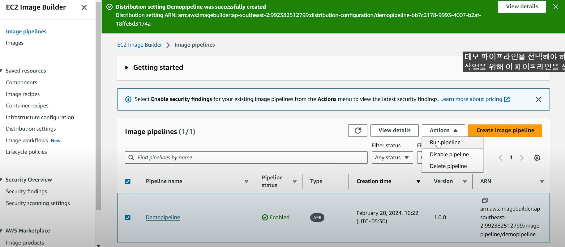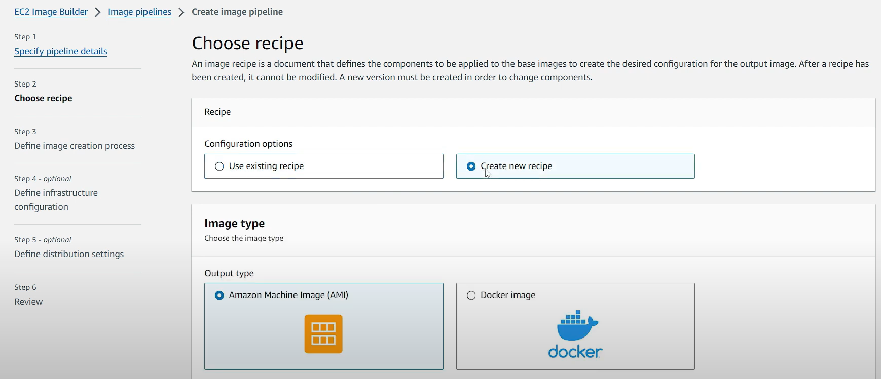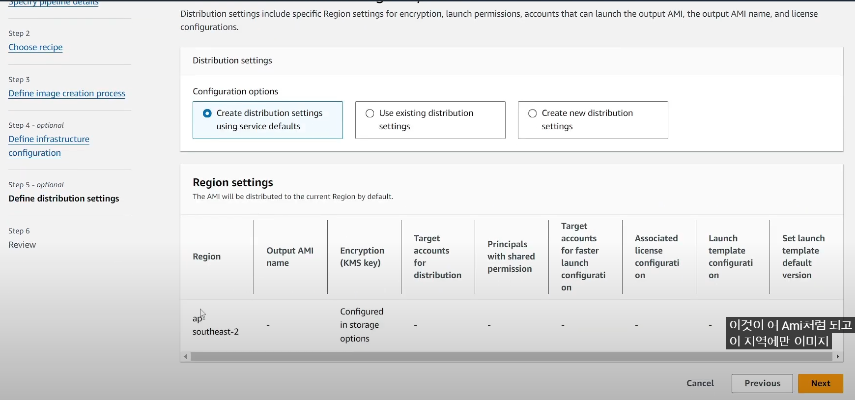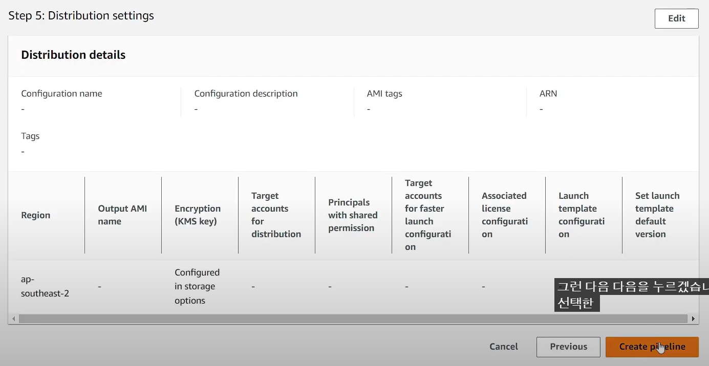 - Define distribution settings (단일 리전에 AMI 배포로 기본으로 설정)