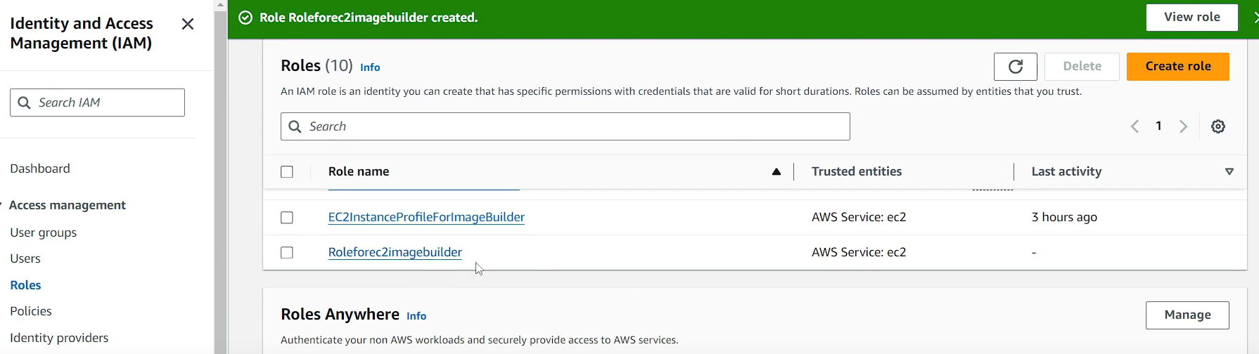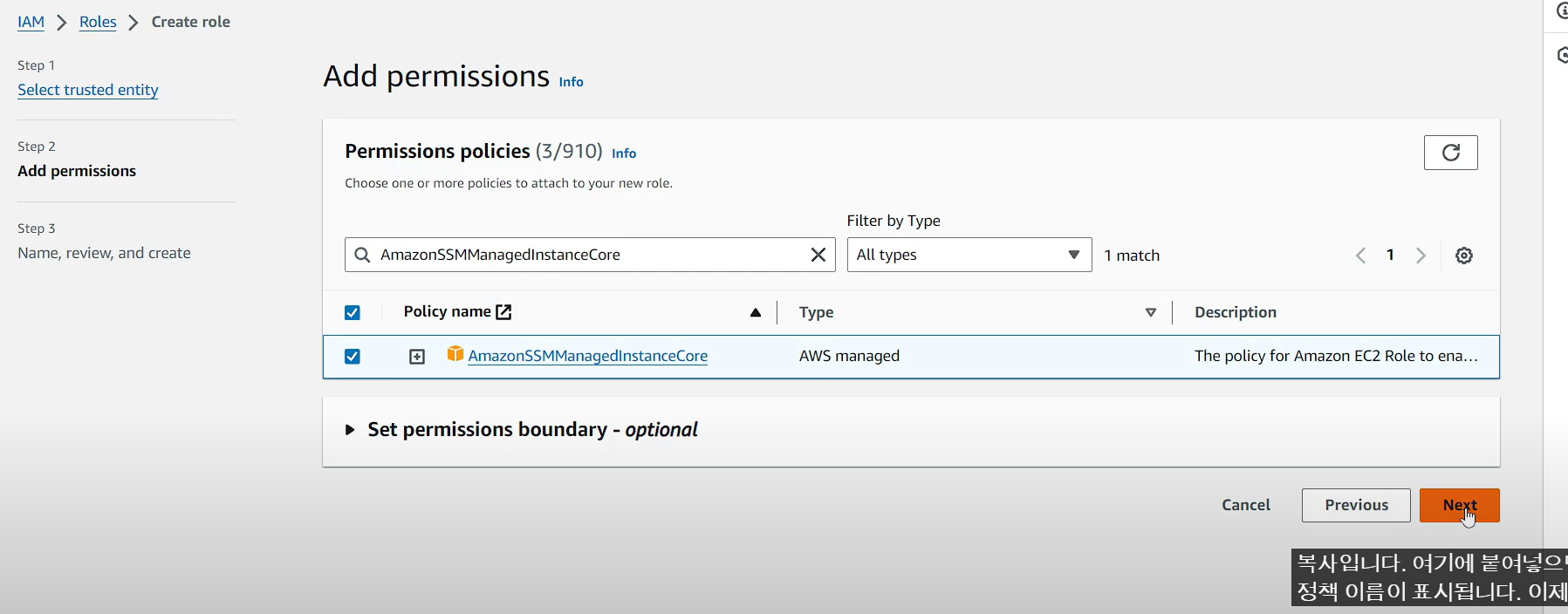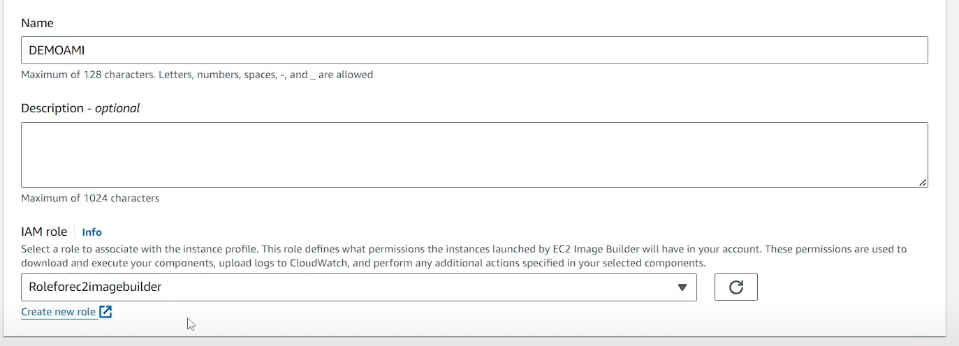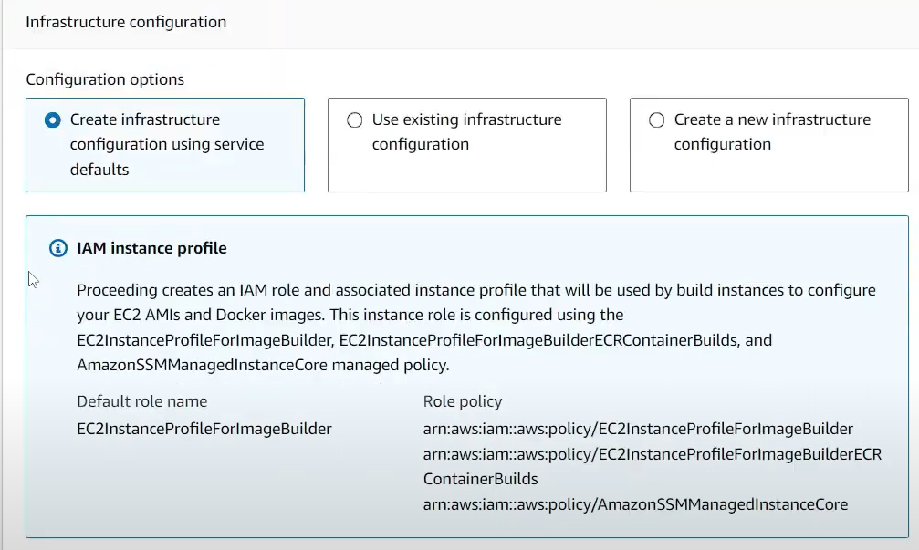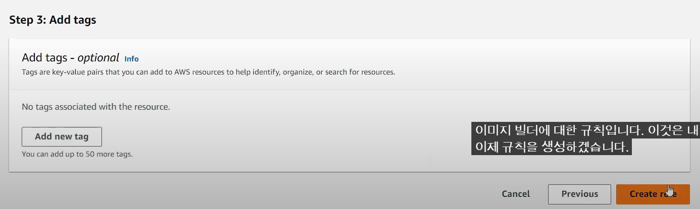 - IAM 역할 생성 필요 (정책 3개 필요) --> Roleforec2imagebuilder 생성
