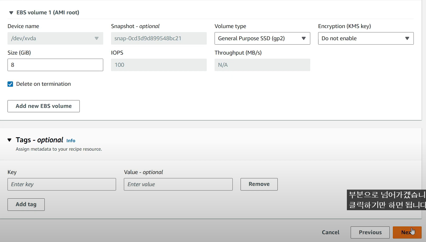 - AMI에 JAVA 설치를 위해 선택