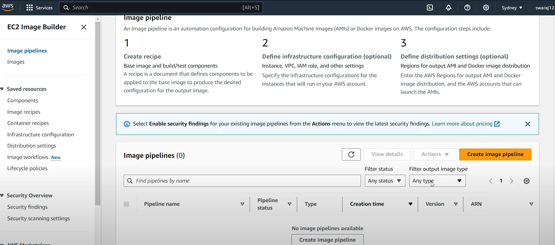## Image Pipelines 생성 작업