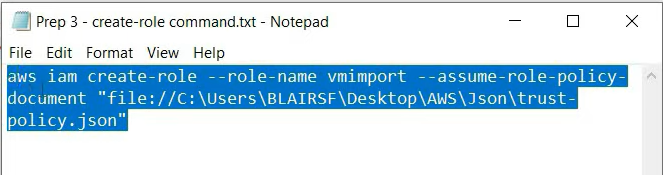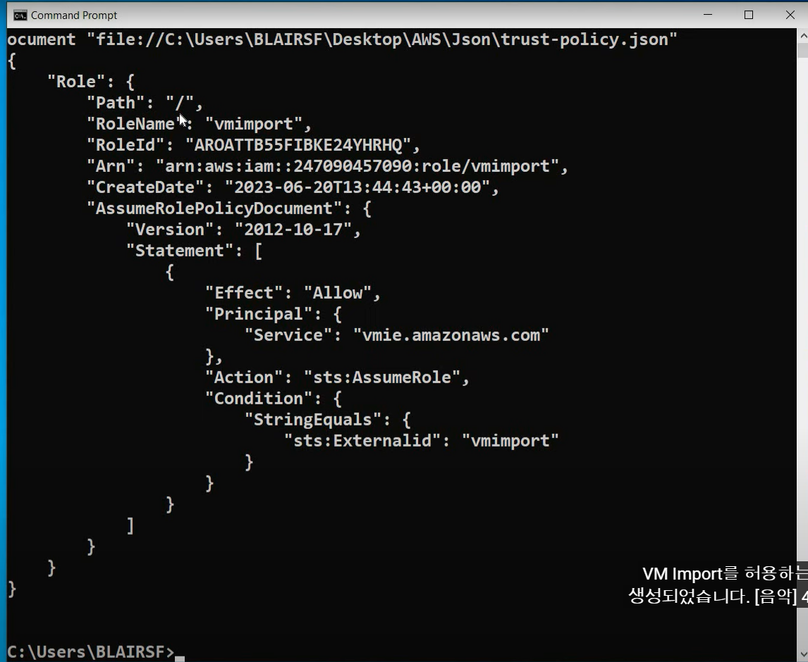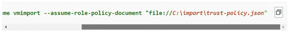 aws iam create-role --role-name vmimport --assume-role-policy-document "file://C:\import\trust-policy.json"