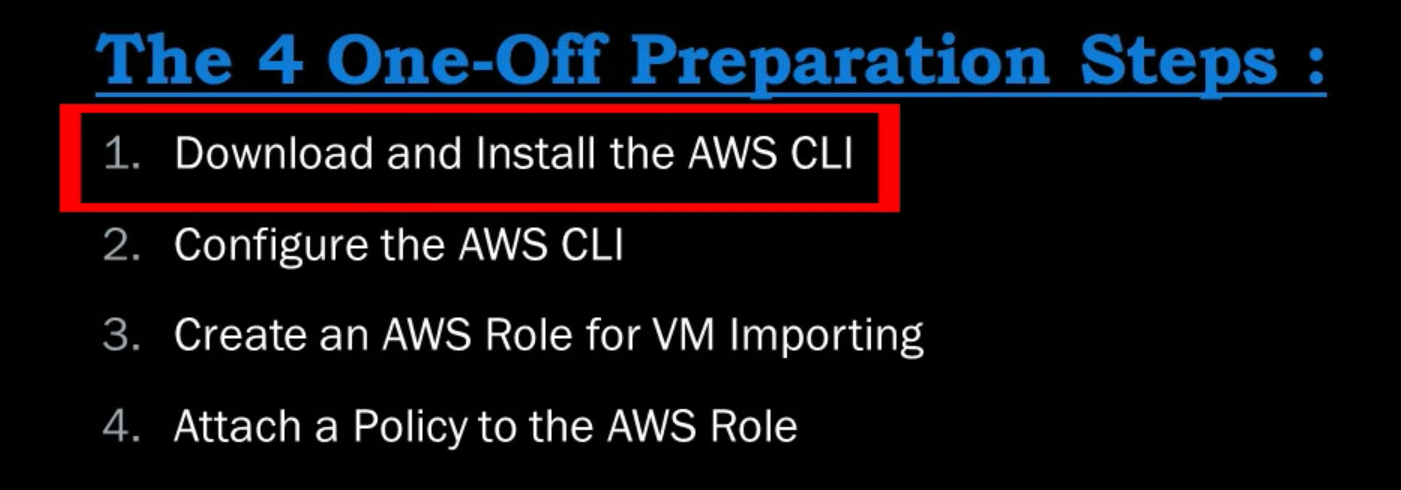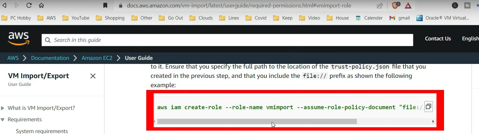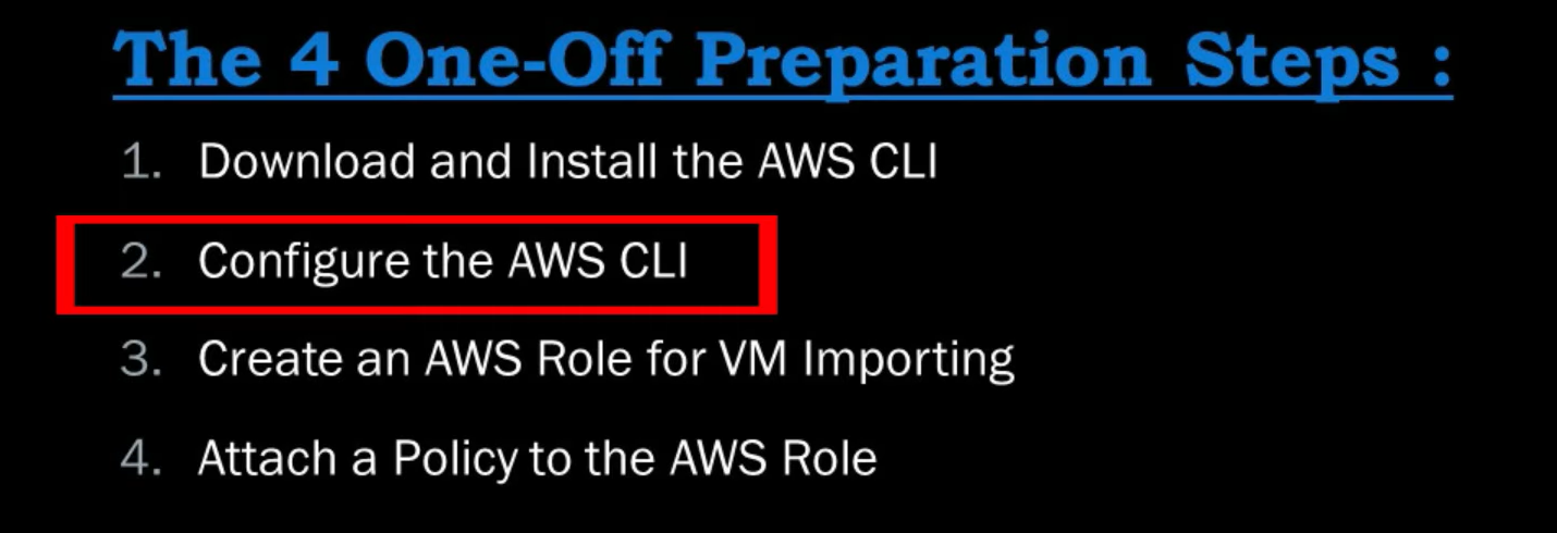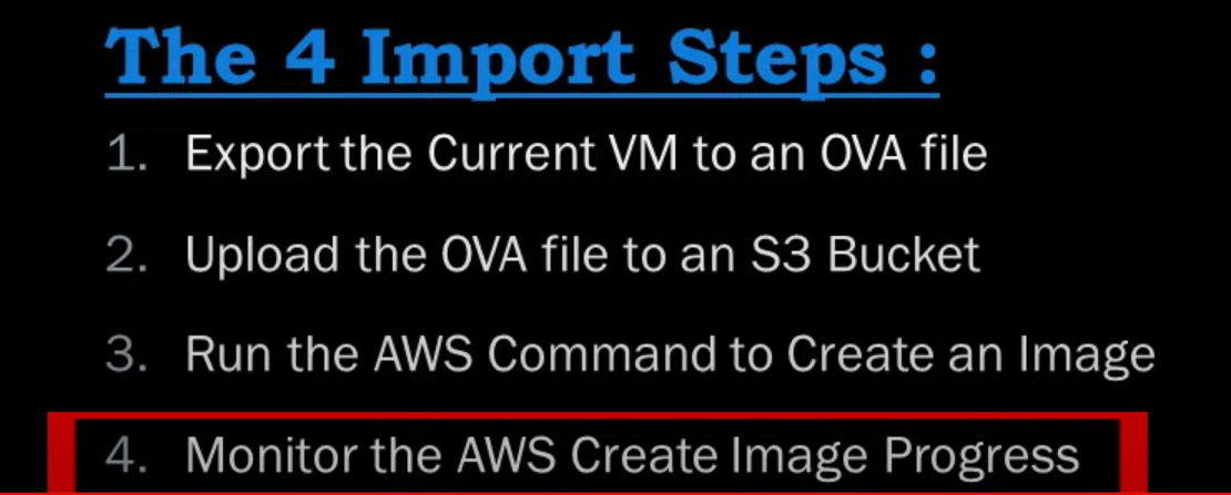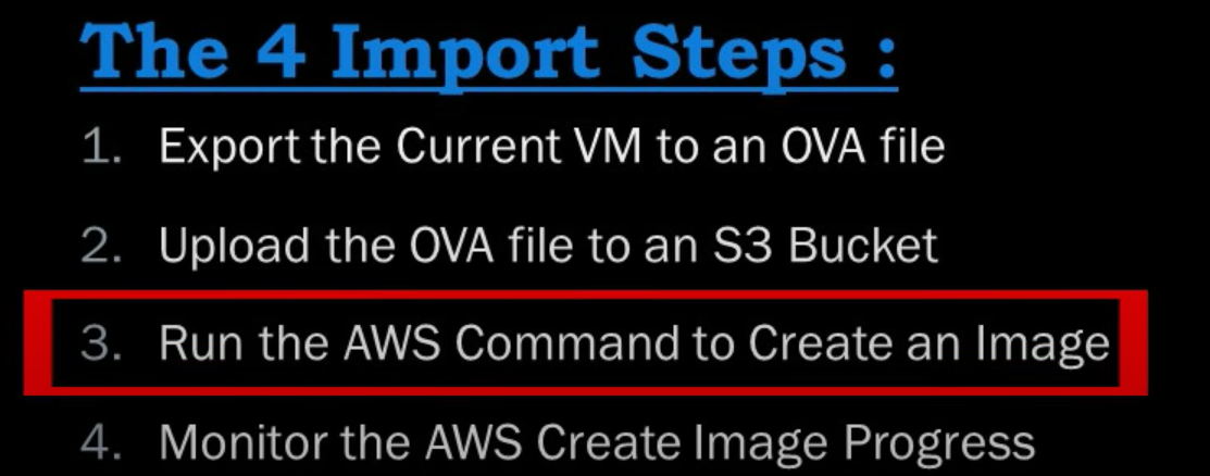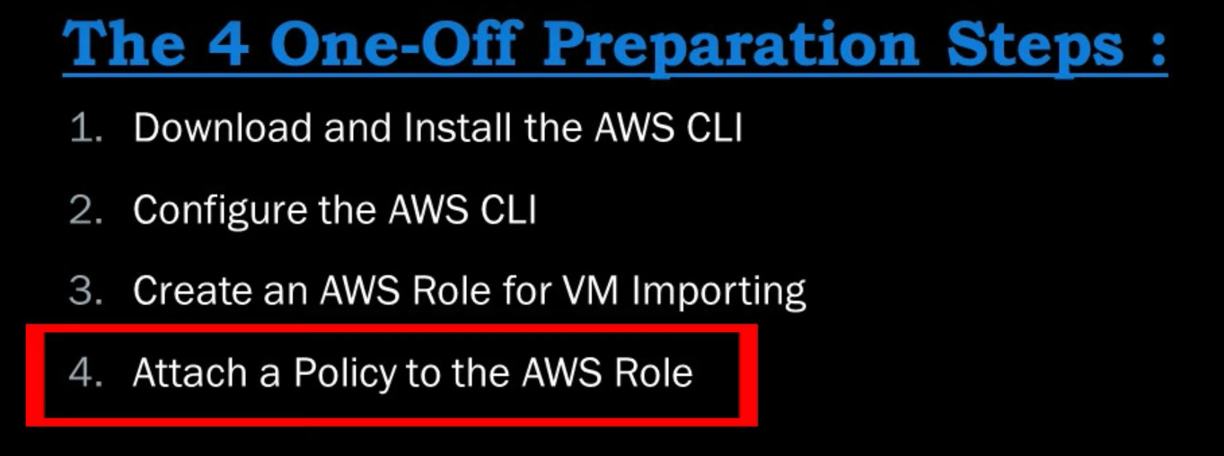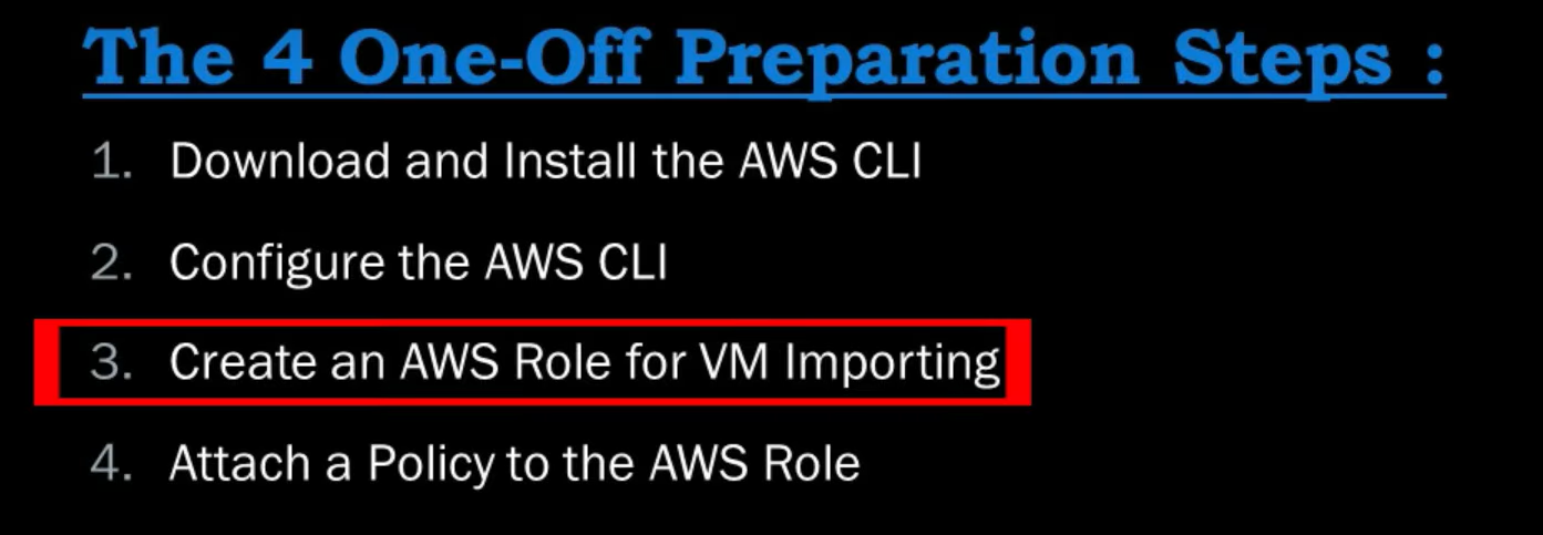 3. Create an AWS Role for VM Importing : https://docs.aws.amazon.com/vm-import...