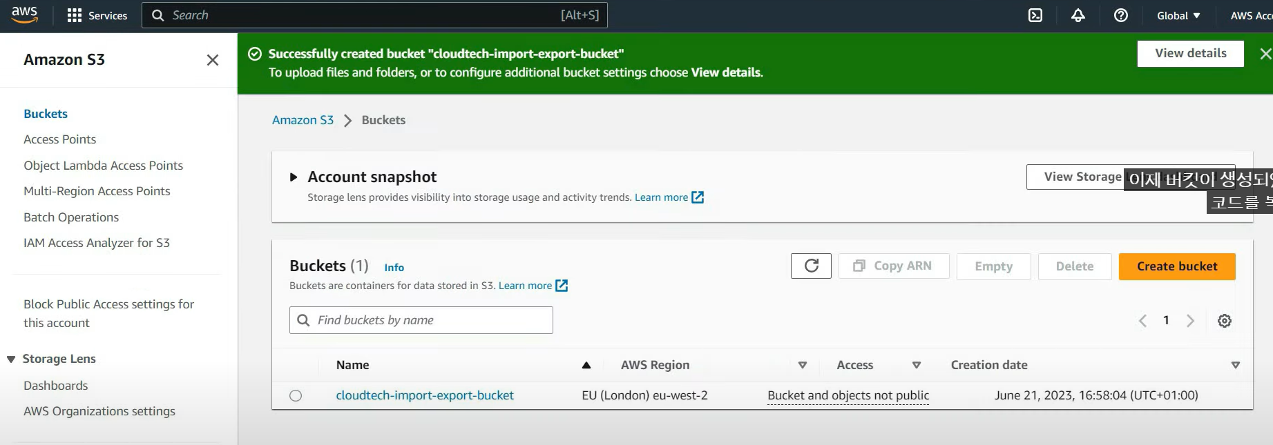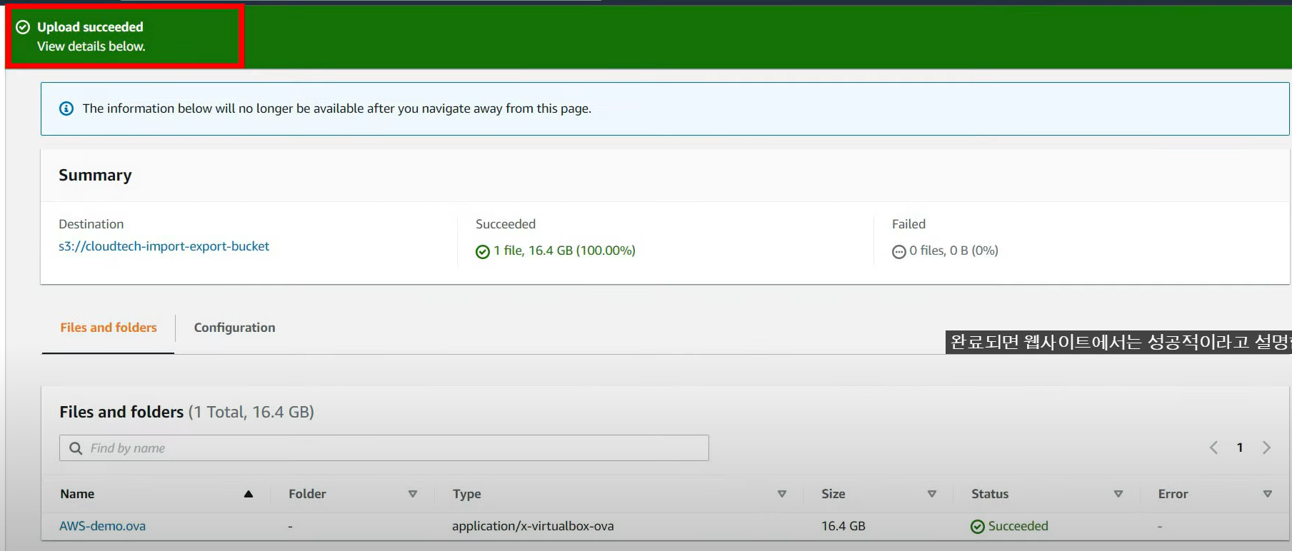 여기서 disk-image-file-bucket는 디스크 이미지용 버킷이고 export-bucket은 내보낸 이미지용 버킷입니다.