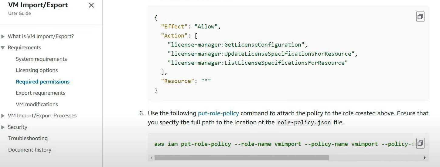 4. Attach a Policy to the AWS Role, also : https://docs.aws.amazon.com/vm-import...