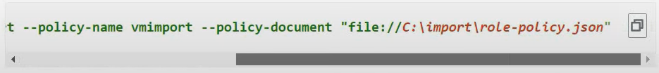aws iam put-role-policy --role-name vmimport --policy-name vmimport --policy-document "file://C:\import\role-policy.json"