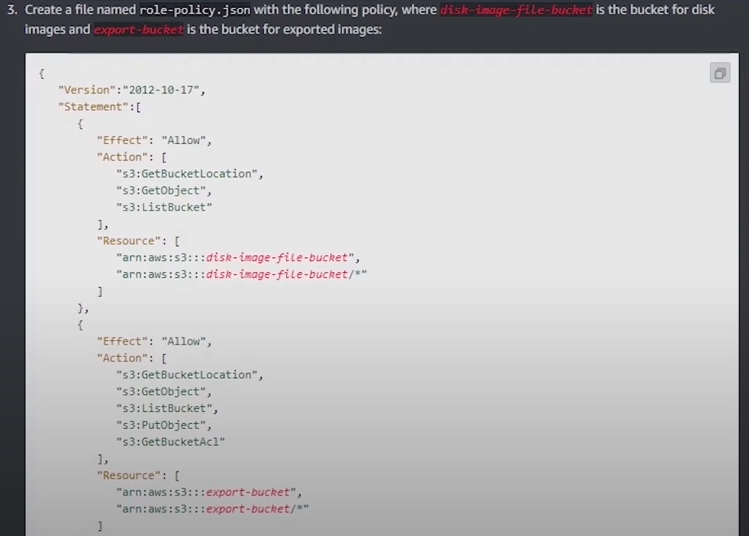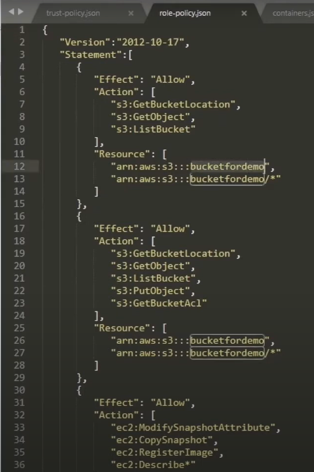 - role-policy.json 파일 저장 (버킷명 수정 필요 - bucketfordemo)