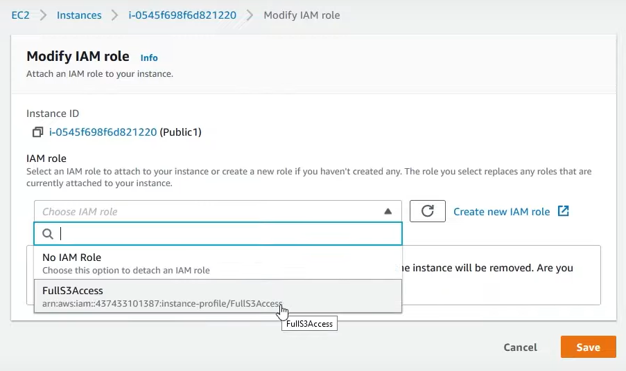 - aws configure (AWS AccessKey 필요없음) 없이 EC2에 IAM 역할 등록으로 S3 접근 가능