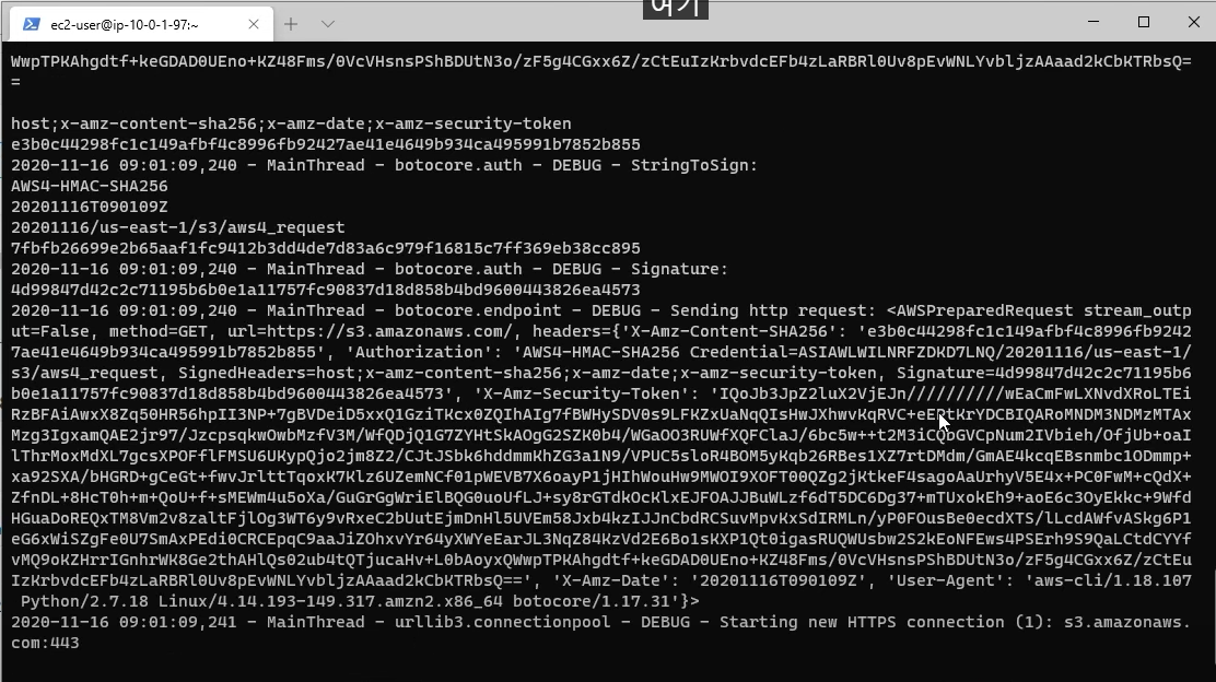 - aws s3 ls --debug (로그분석)
