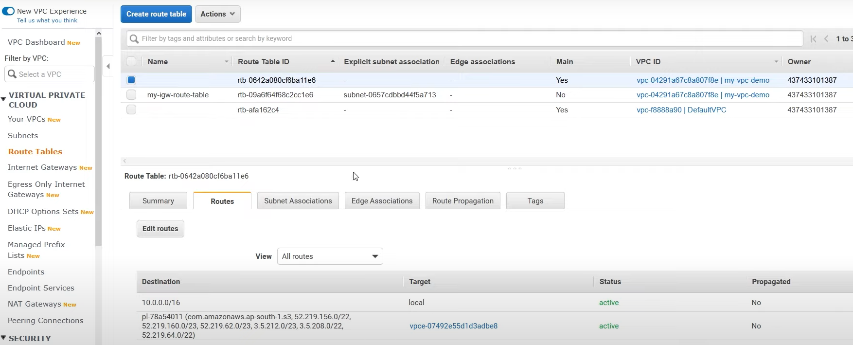 - 라우팅 테이블 선택