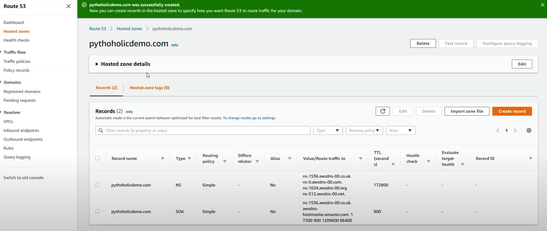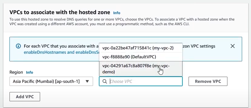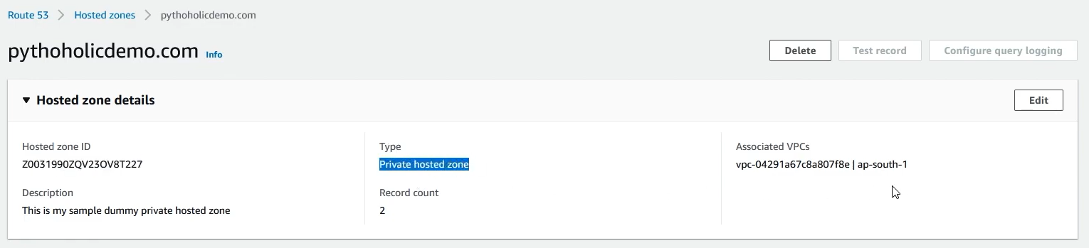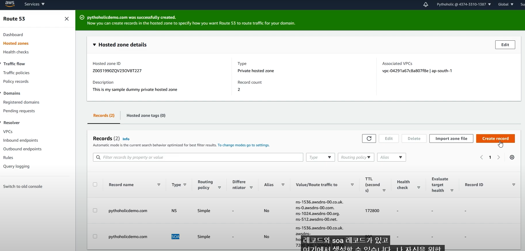 - pythoholicdemo.com ==> Private Hosted Zones 생성