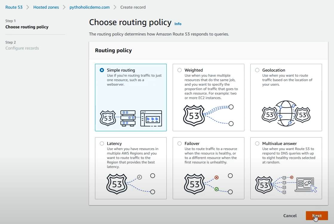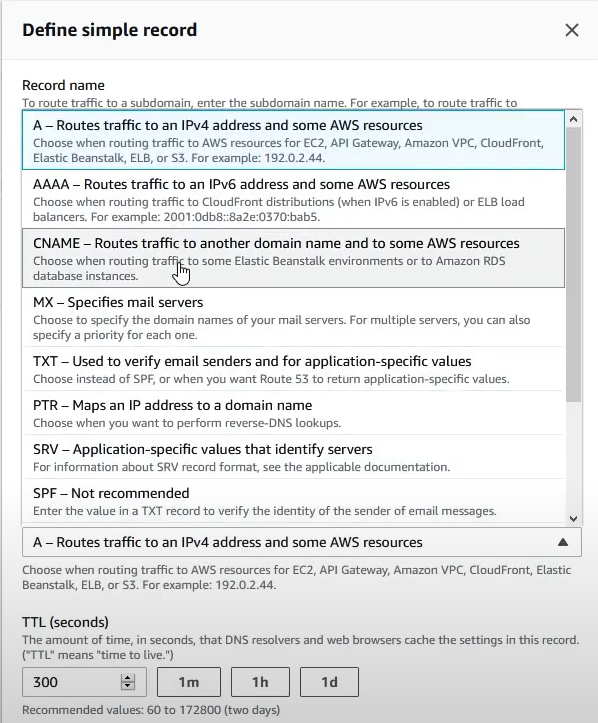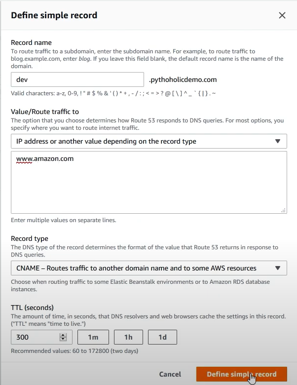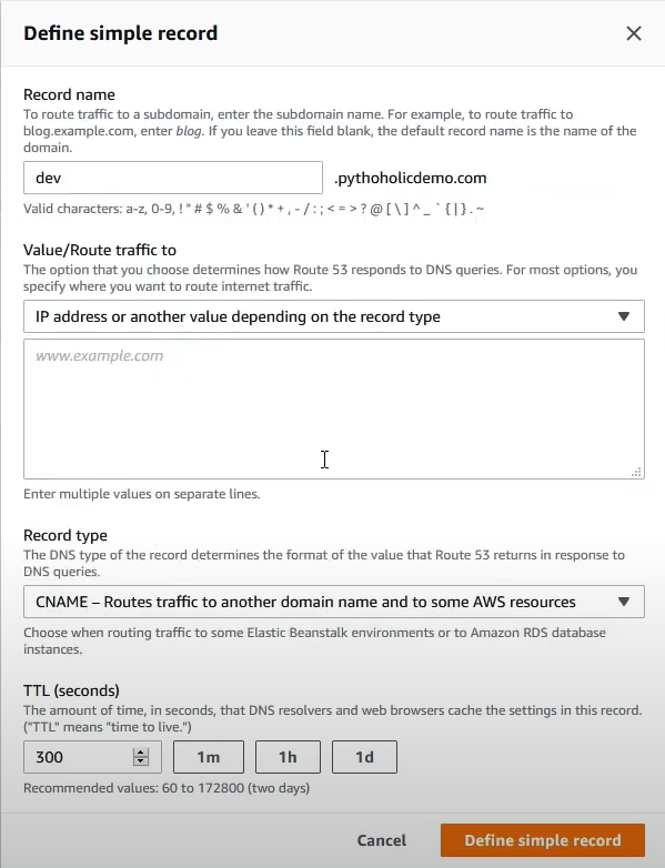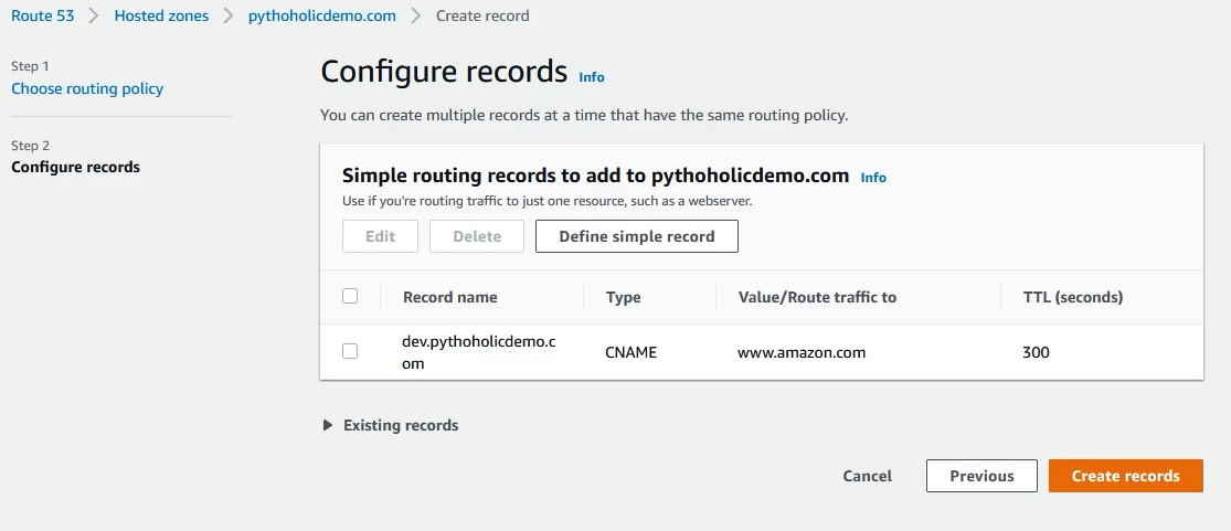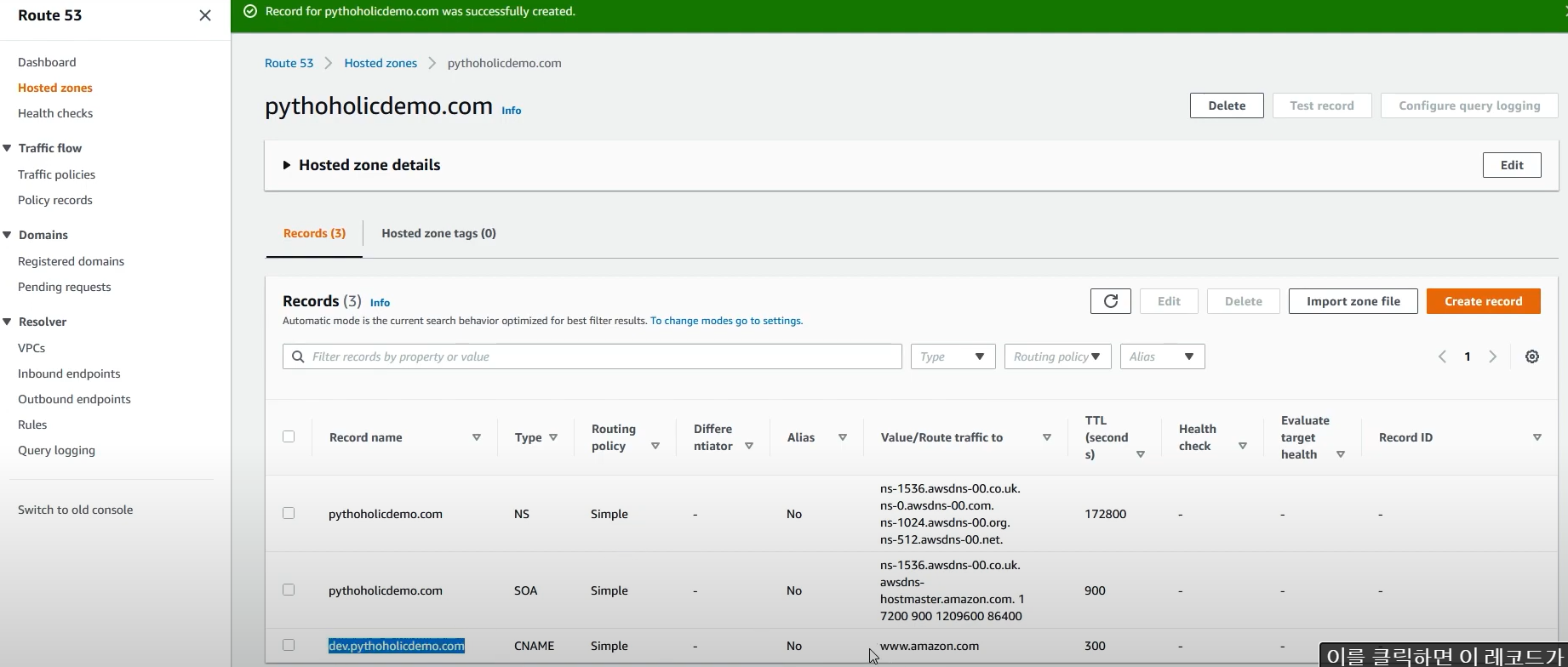 - 적용할 레코드 생성 (심플 라우팅 생성)