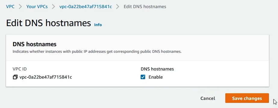 ## Public IPv4 DNS 미생성 이유 (기본값으로 DNS hostnames 비활성화)
