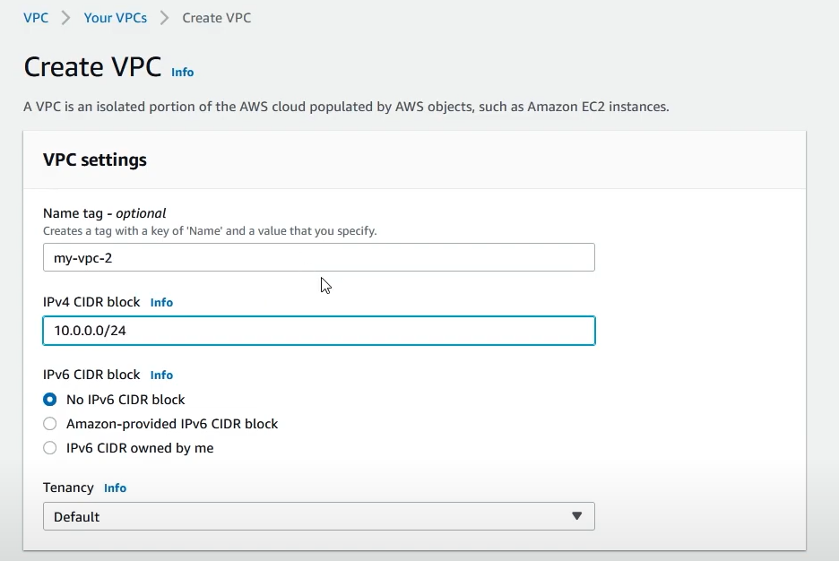 ## 테스트를 위한 my-vpc-2 에 서브넷 생성 (DHCP 옵션 비활성화)