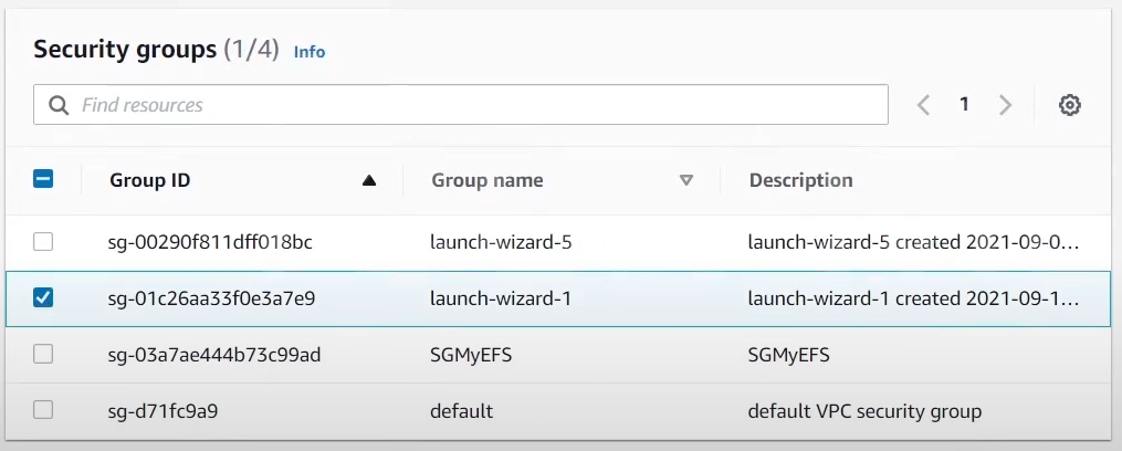 - 적용할 보안그룹 선택