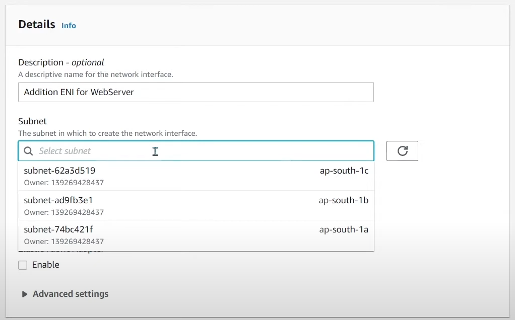 - 추가 ENI 생성