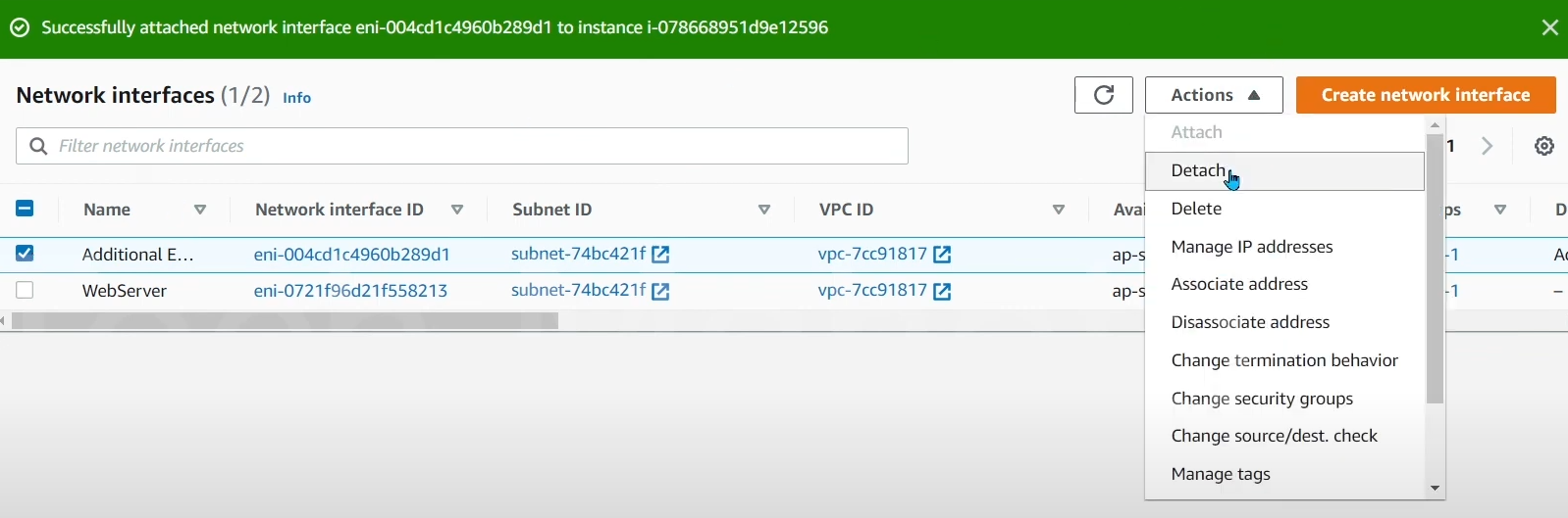 ## 추가 ENI 제거 방법