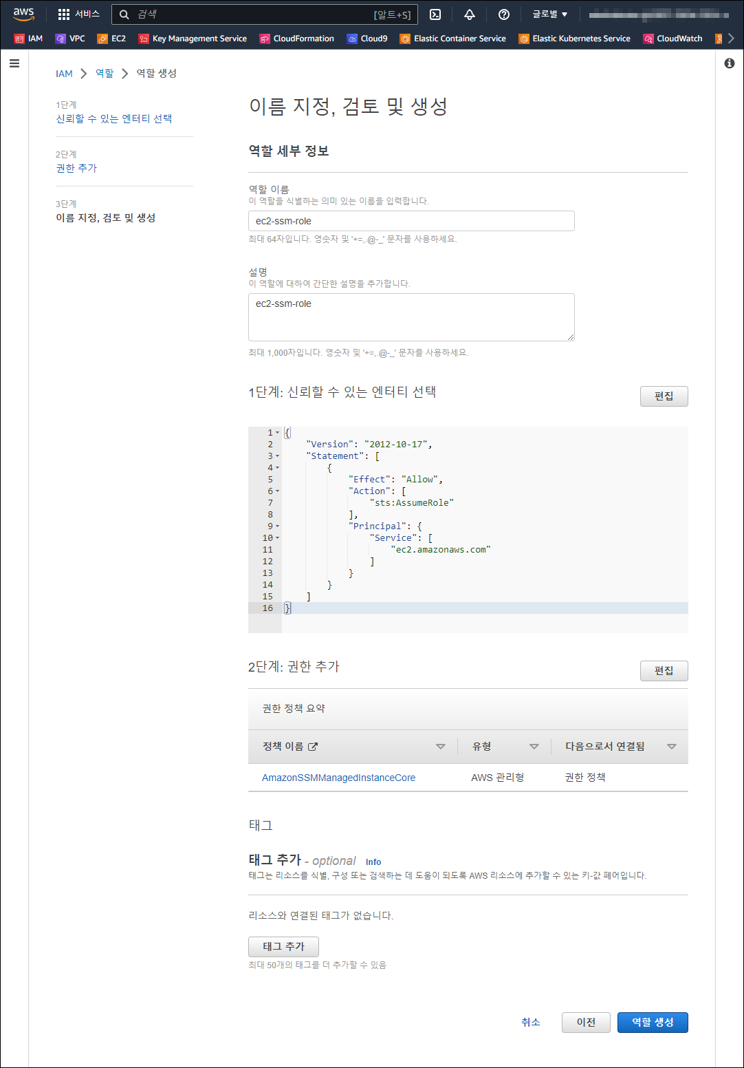 1) AmazonSSMManagedInstanceCore 역할 생성