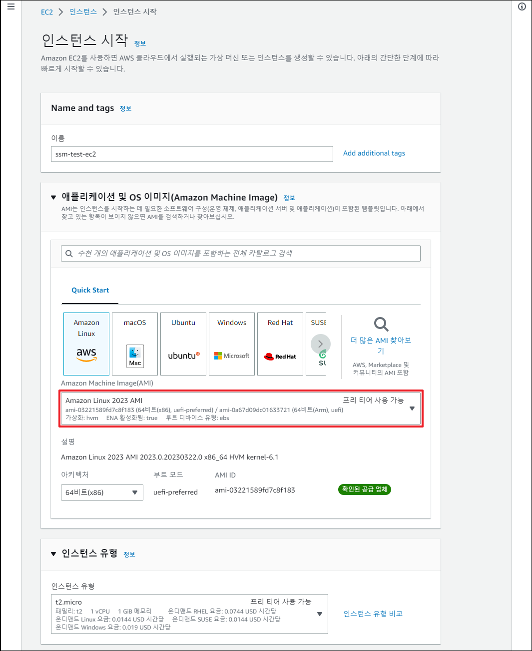- 아래와 같이 AWS에서 제공하는 일부 AMI의 경우 SSM 에이전트가 기본적으로 설치되어 있음