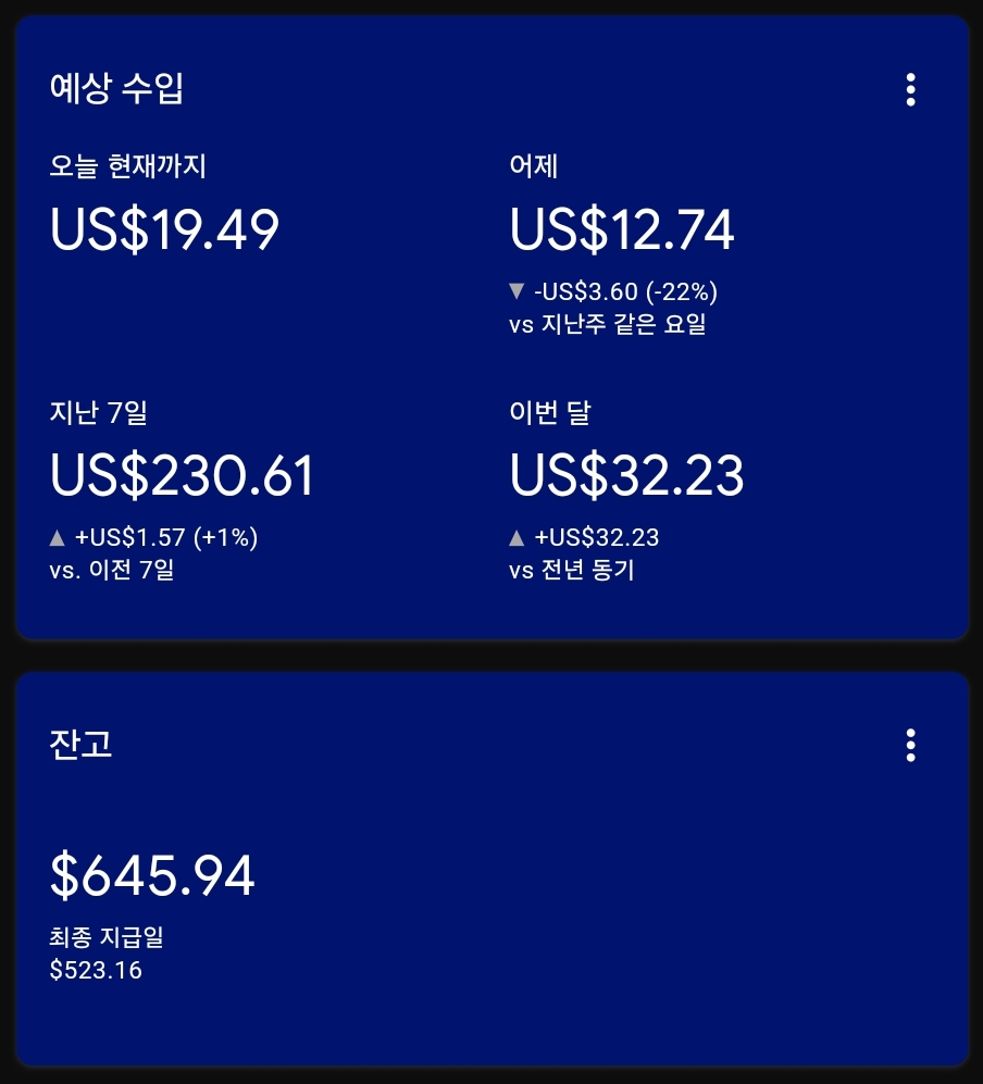 | [인터넷건물주 - 5월 월세] US $671 돌파 - AdSense & Dable 입성 5/31일!! (64) | 2024.05.31 |