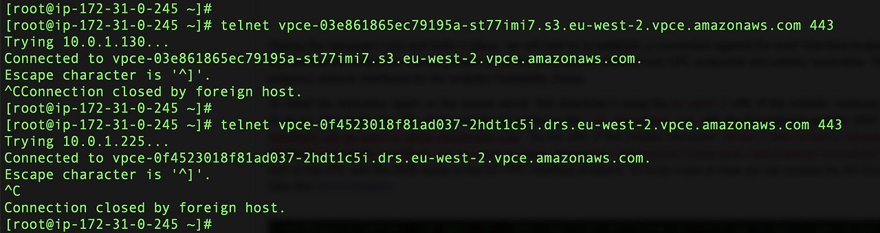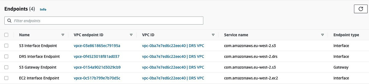 We did this using VPC interface and Gateway endpoints. We showed how AWS PrivateLink for AWS services can provision interface VPC endpoints (i.e., interface endpoints) in a VPC environment. These endpoints are directly accessible from applications that are on-premises over VPN and AWS Direct Connect, or in a different AWS Region over VPC peering. In reference to the Elastic Disaster Recovery service, we used the Elastic Disaster Recovery interface endpoint, EC2 interface endpoint and Amazon S3 interface, and Gateway endpoints to access the service privately over PrivateLink. These endpoints help to protect the workload and configure cross-Region disaster recovery with Elastic Disaster Recovery.