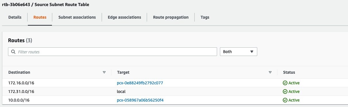 There is a private source server running in the eu-west-1 Region with no internet access. The following is the route table associated with the subnet of this server. In this route table, the subnet can reach two different VPCs via the corresponding VPC Peering connections. The 172.16.0.0/16 CIDR is the VPC CIDR from which you can SSH into this server. The 10.0.0.0/16 CIDR is associated with the VPC in the eu-west-2 Region from which you want to protect this server.