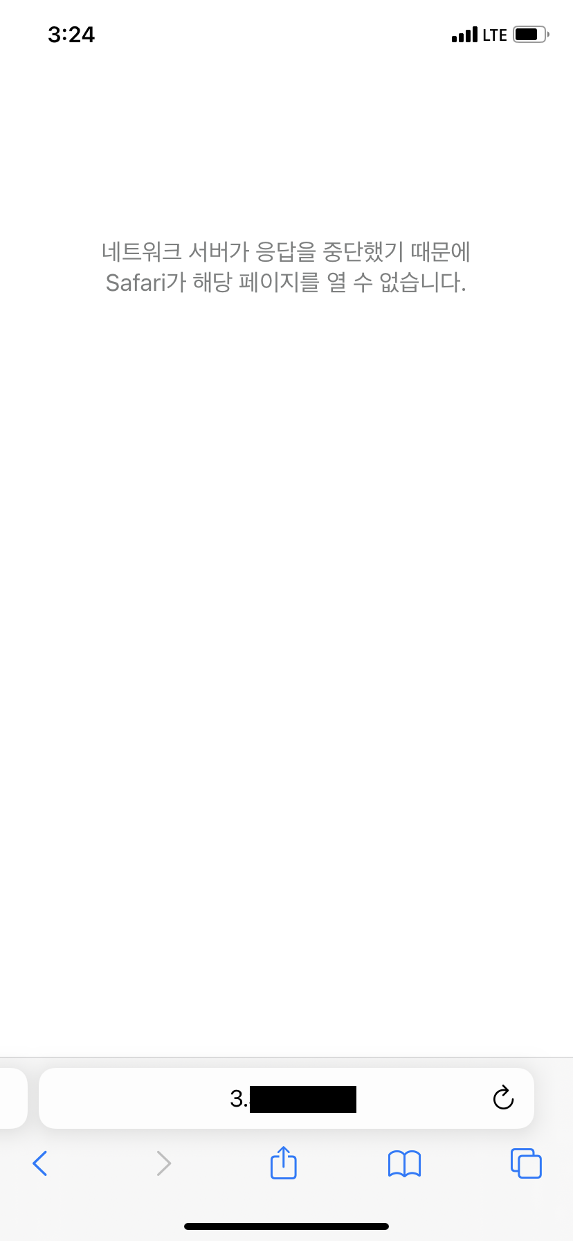 내 휴대폰의 IP를 차단한 이후 다시 접속하려고 시도해본 결과 네트워크 서버가 응답을 중단했기 때문에 해당 페이지를 열 수 없다고 나온다.