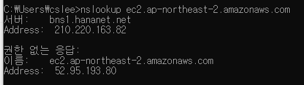 ## nslookup ec2.ap-northeast-2.amazonaws.com