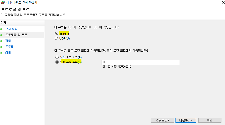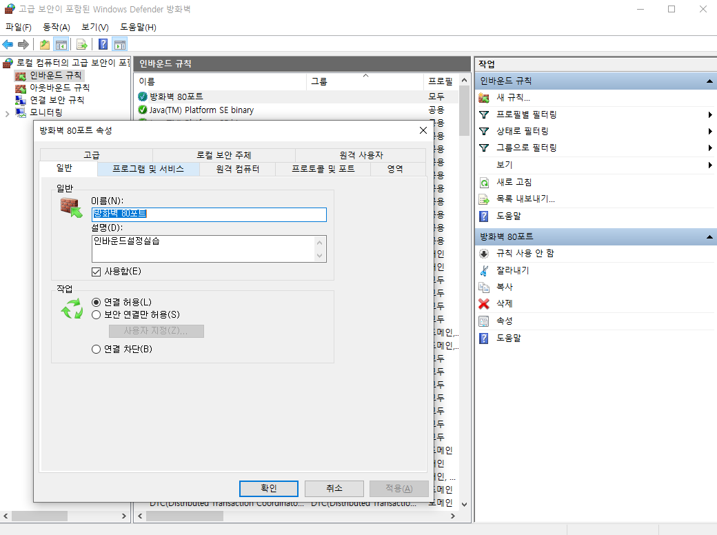 3. 인바운드 설정 (아웃바운드 설정 동일)