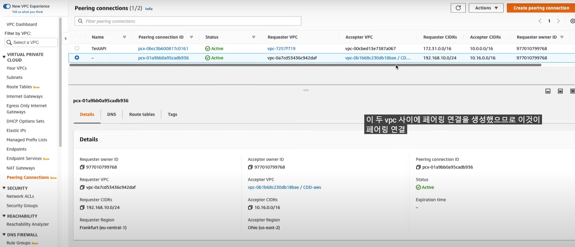 ## VPC 피어링 연동 (AWS 10.16.0.0/16 <==> IDC 192.168.10.0/24)