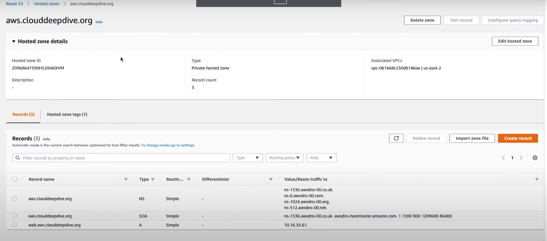 - web.aws.clouddeepdive.org ==> 10.16.35.61 (EC2 IP주소)
