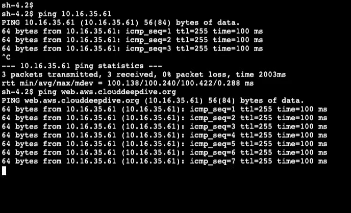 ## IDC APP서버 ==> AWS EC2 로 DNS Ping 테스트 성공