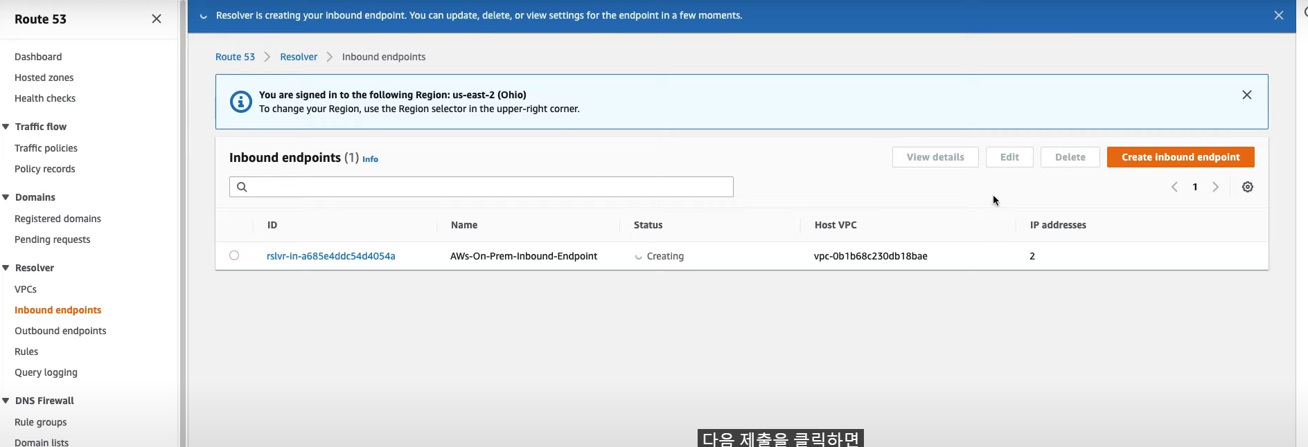 - 규칙 생성 완료 (AWS ==> IDC DNS로 질의)