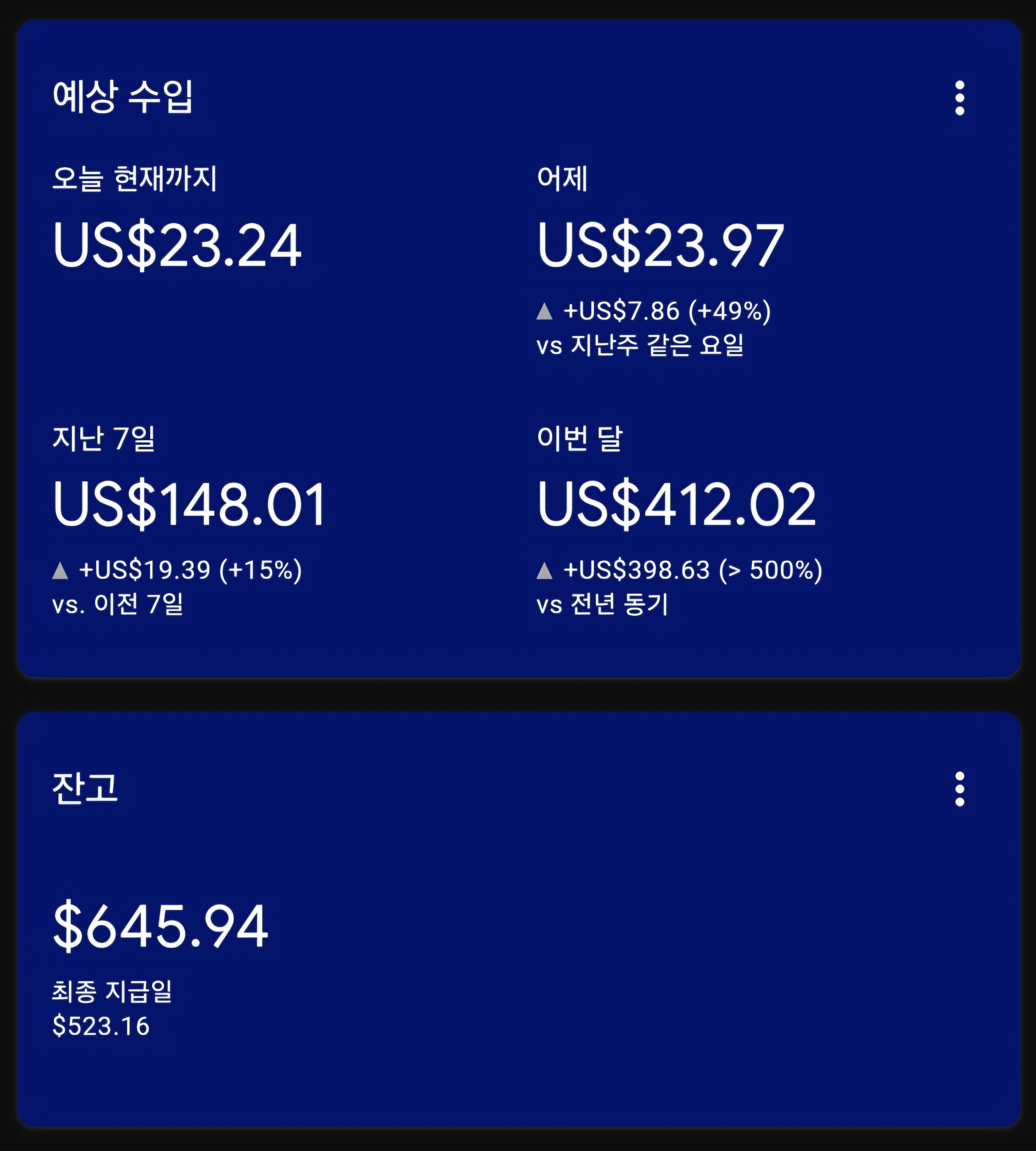 | [인터넷건물주 - 6월 월세] US $476 돌파 - AdSense & Dable 입성 6/23일!! (43) | 2024.06.23 |