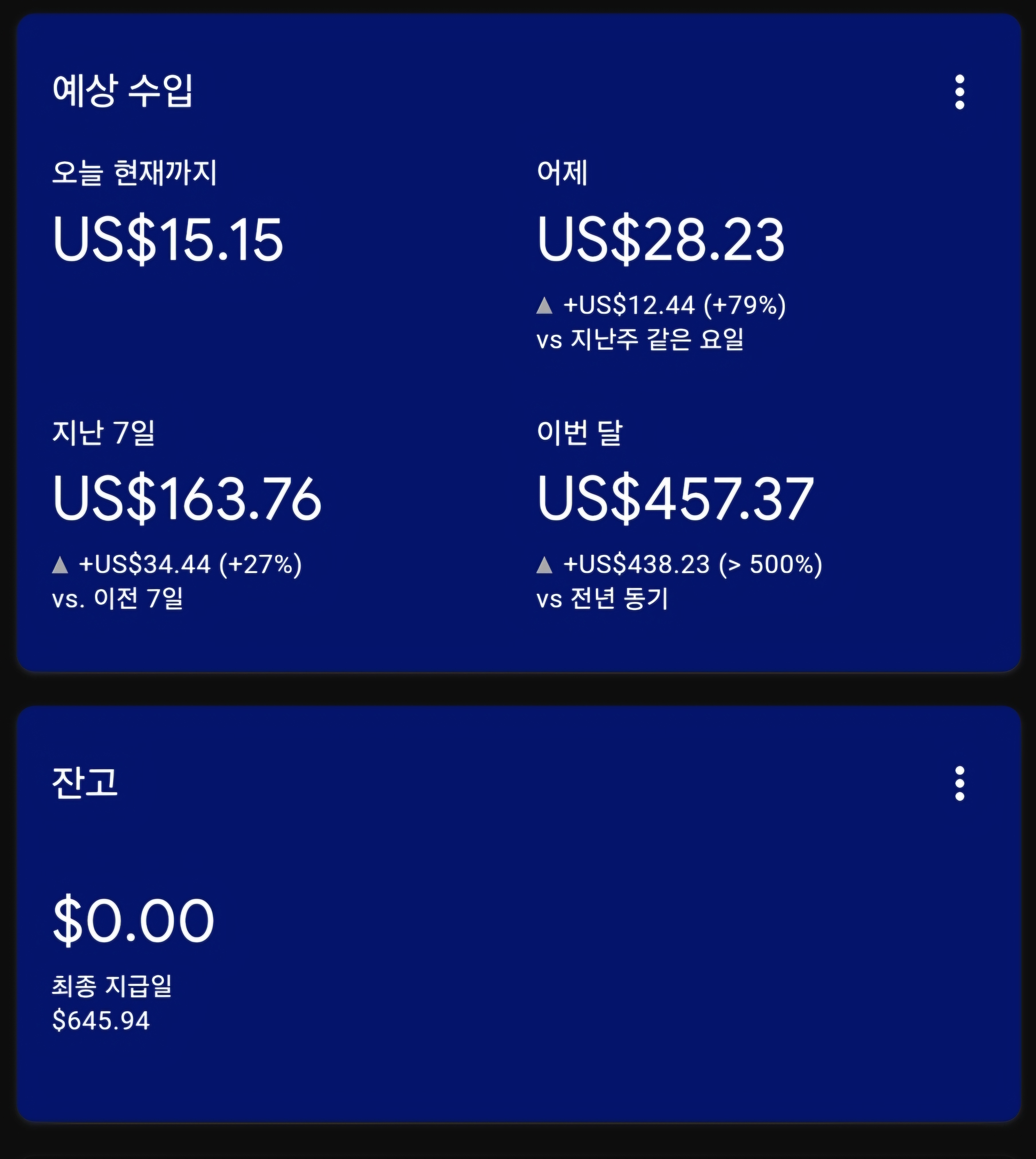 | [인터넷건물주 - 6월 월세] US $440 돌파 - AdSense & Dable 입성 6/21일!! (45) | 2024.06.21 |
