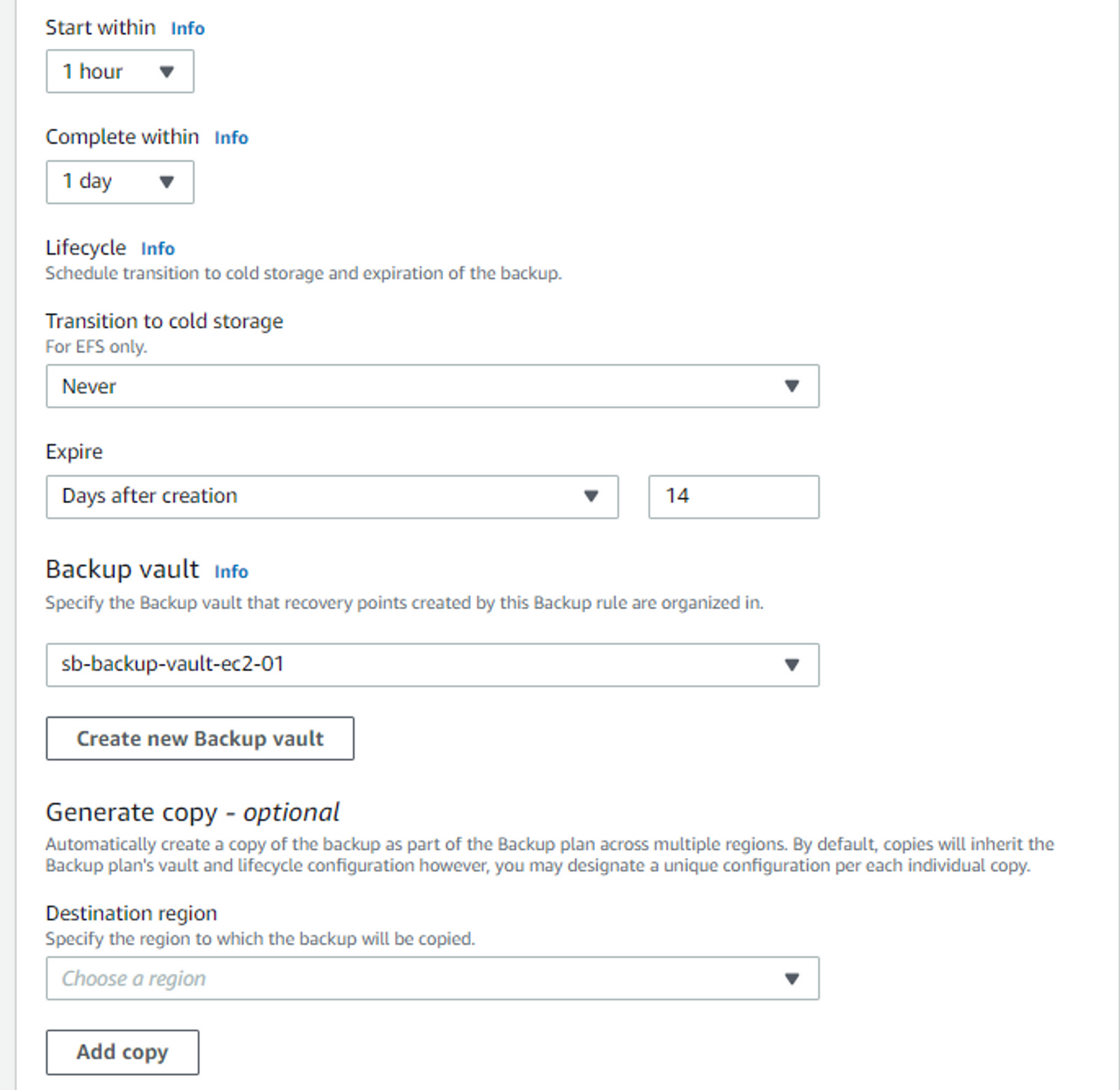 백업 볼트 (Backup Vault) : 백업 구성시 사용하는 컨테이너