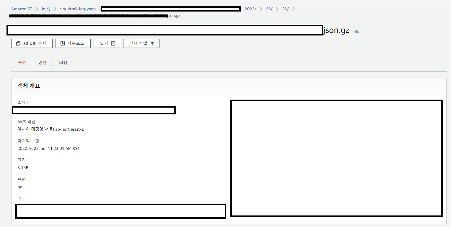 이제 CloudTrail의 추적과 연결된 S3 버킷을 확인해 봐야 한다.