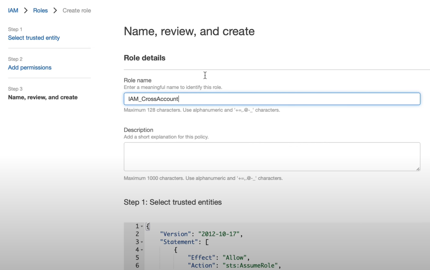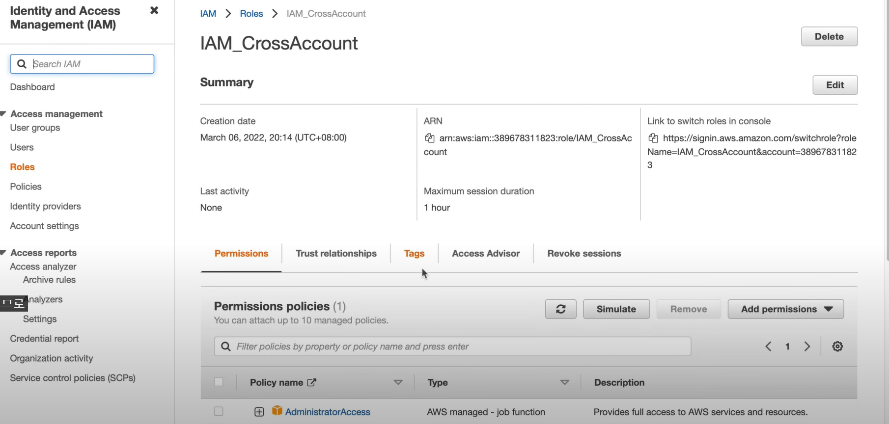 - 역할이름 생성 : IAM_CrossAccount